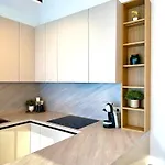 يحتوي التصميم على التلفزيون متعدد القنوات وتلفزيون بشاشة مسطحة مع قنوات فضائية ويتميز بالشرفة ومنطقة الجلوس. كما تمّ تجهيز مكان الإقامة بالصالون. تتوفّر أسرّة مع وسائد محشوة بالزغب تحت تصرف الضيوف. تحتوي الشقة على المرحاض المنفصل والدوش لتعزيز راحتك. علاوة على ذلك، هناك ملاءات الحمام والمناشف أيضًا.